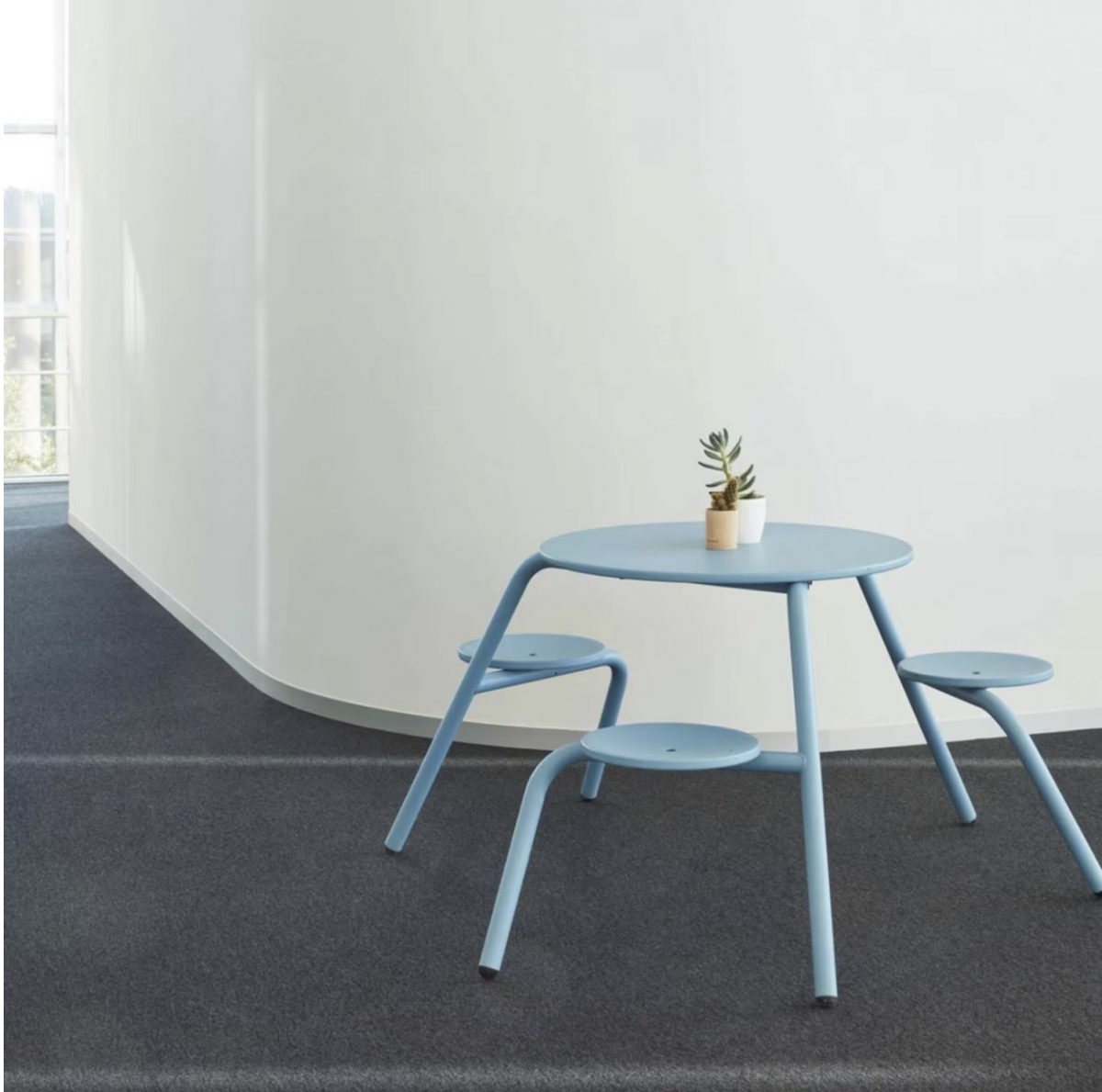 Kim loại đươc sơn tĩnh điện màu ghi sáng hoặc màu ghi xám. Mặt bàn, mặt ghế dày 3mm. Khung bàn, chân bàn phi 42 sắt dày 1,8mm.