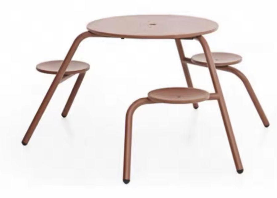 Chất liệu khung và mặt bàn, ghế: bằng kim loại.